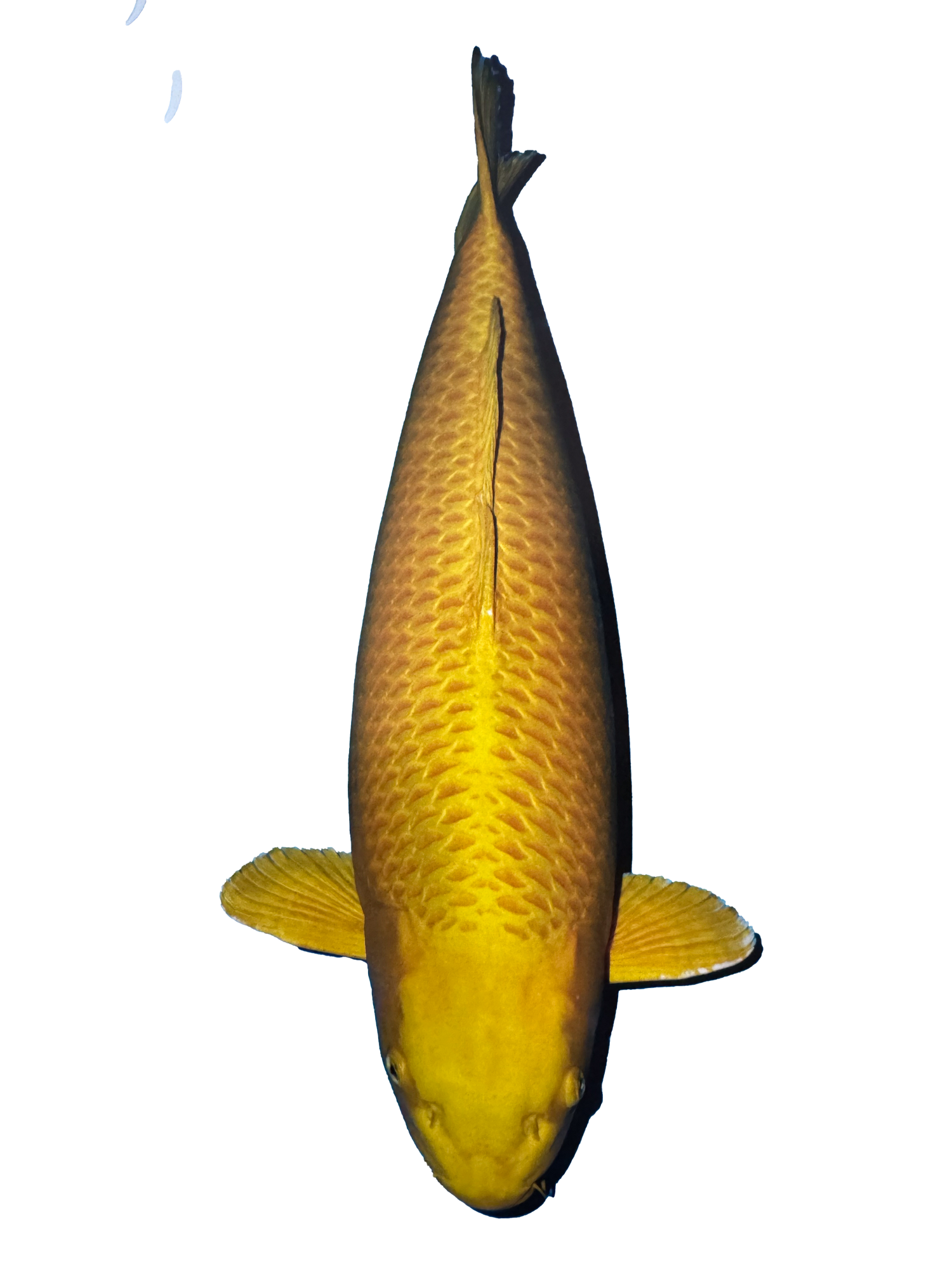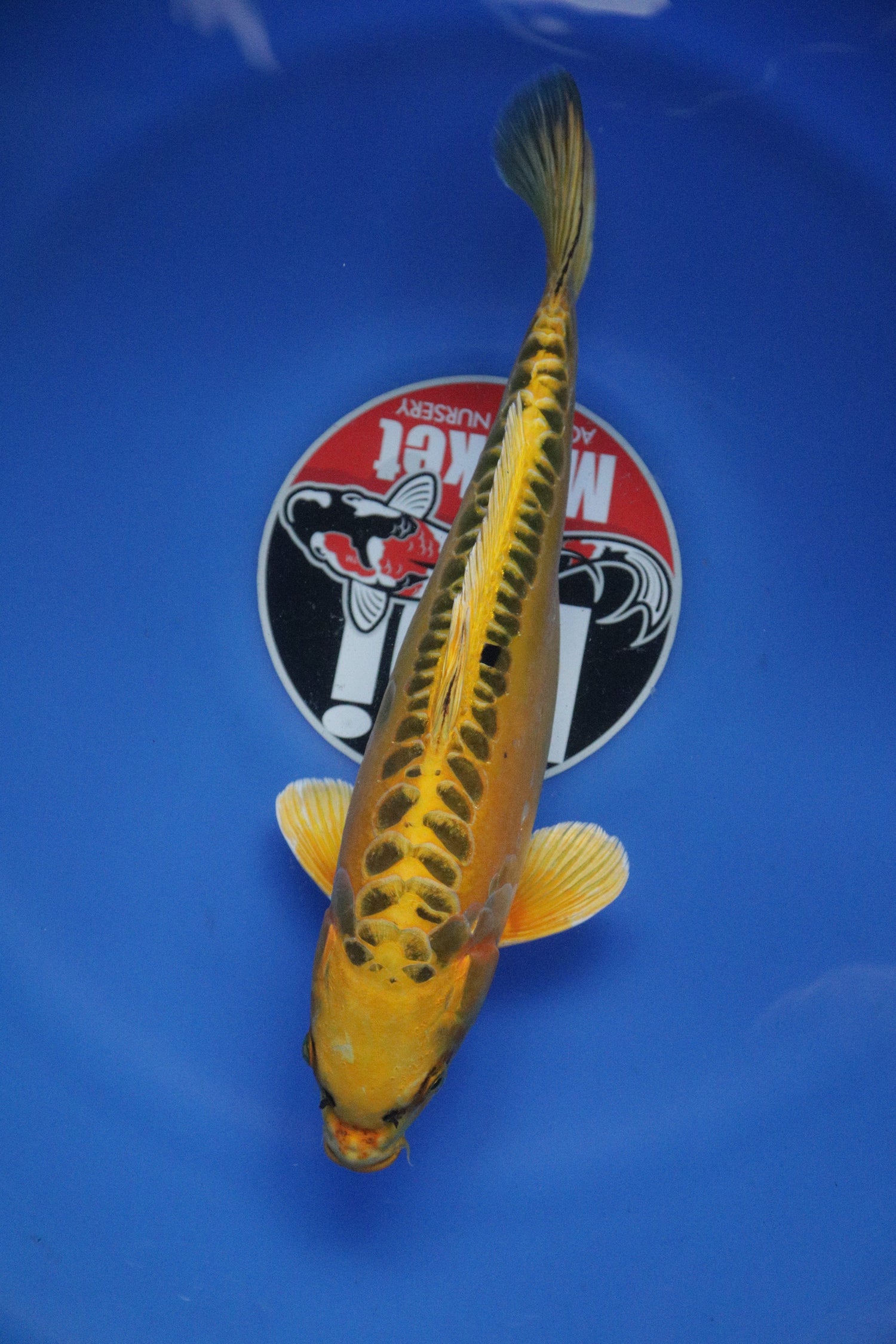 View ProductThe word Matsubagoi (maht-SOO-bah-GOY) translates as ‘pinecone carp’ and refers to the very recognisable pinecone or net-like pattern visible on all Matsuba koi. This pattern is caused by a reticulation pattern on the scales of the koi and originally comes from the Asagi koi, one of the original ornamental carp varieties. Matsuba koi come in many different colours, with some metallic versions, like the white Gin Matsuba, and some non-metallic versions, like the red Aka Matsuba. The Ki Matsuba (KEE maht-SOO-bah) is one of these latter, non-metallic variations with a beautiful sunshine-yellow base colour.The Ki Matsuba variety began with the Kin Matsuba koi, which is a yellow, metallic koi with the Matsuba reticulation. This metallic koi was created in the 1950s from a pairing of a Yamabuki Ogon (a single-coloured, yellow metallic koi, the ancestor of all metallic koi) and a Shiro Matsuba (a single-coloured, white koi with reticulation in the scales). This pairing resulted in koi which had the metallic, yellow colour of the Yamabuki Ogon with the reticulated scales of the Shiro Matsuba and were named Kin Matsuba, meaning ‘golden pinecone’. From the Kin Matsuba, the Ki Matsuba was created using selective breeding to slowly reduce the amount of sheen and lustre in the skin until a non-metallic version of the Kin Matsuba was created in the 1960s and named Ki Matsuba, meaning ‘yellow pinecone’.Things to consider when judging this variety:· Ki (yellow) base colour· Reticulation scale pattern· Metallic lustre and sheen