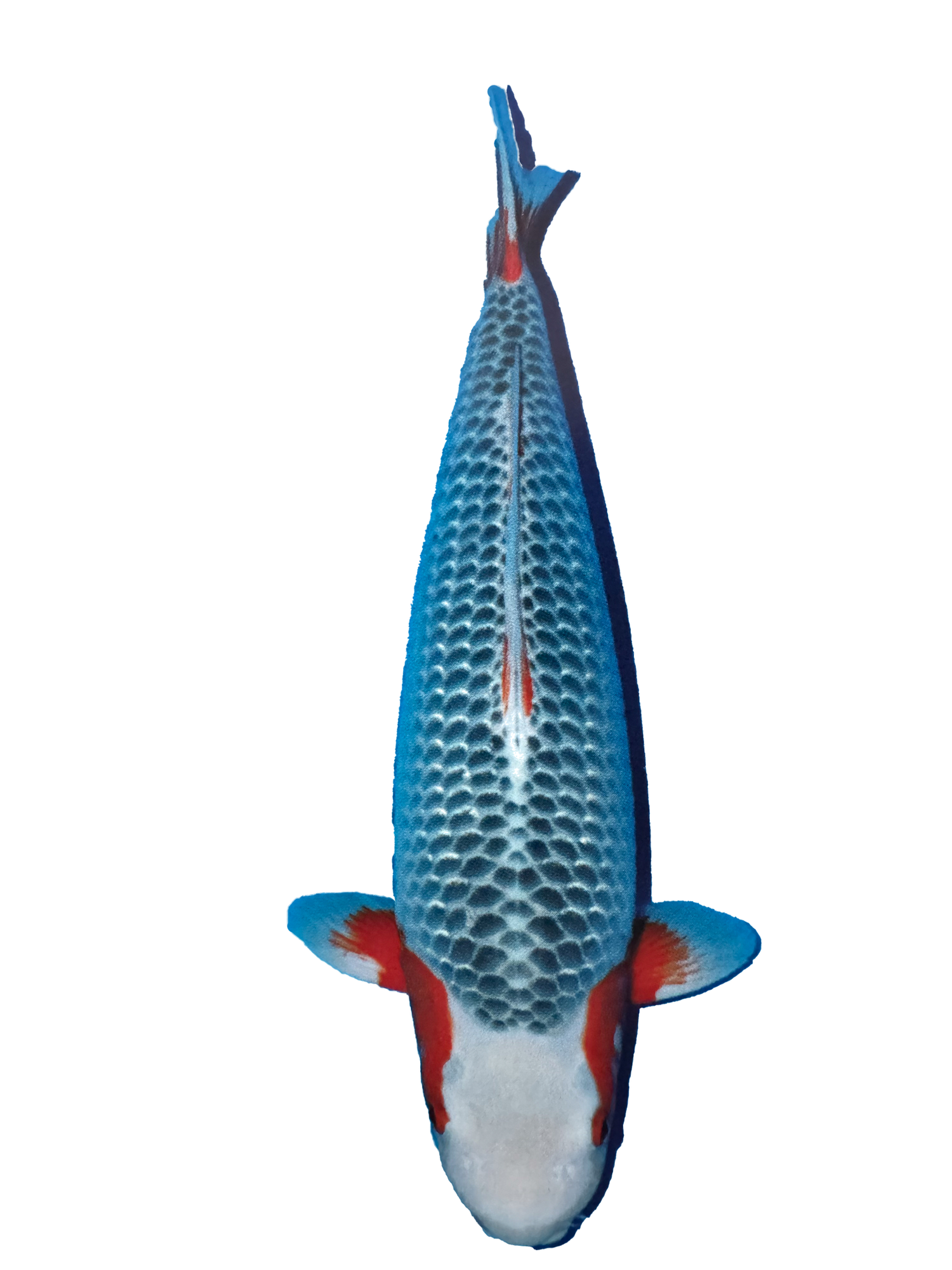 View ProductThe Kikusui (KEE-coo-SOO-wee) koi is essentially a Doitsu version of a Hariwake koi which is a metallic, two-coloured koi with a white base colour and a red, orange, or yellow pattern on top of the white colouration. A Kikusui is often described as a metallic, Doitsu Kohaku koi as it is a scaleless, white koi with a red pattern over the white and a reflective sheen, or lustre, in the skin of the koi.The Kikusui is one of the koi varieties that unfortunately we do not know a lot about, historically. It is unknown when the first Kikusui was bred but they have been familiar for a number of decades now, and the variety has certainly made a name for itself at many big koi shows, especially in the last 15-20 years. Nowadays, there are a few ways to produce Kikusui koi. Essentially, a Kohaku is bred to a Platinum Ogon (pure white, metallic koi) to produce a metallic Kohaku and then this metallic Kohaku is bred to a Doitsu variety to produce the metallic, Doitsu Kohaku koi. To save time, however, many breeders combine the two steps into one by pairing a Kohaku and a Doitsu Platinum Ogon or by pairing a Doitsu Kohaku and a Platinum Ogon. Both methods produce good results with a roughly equal outcome of good quality koi, but the preferred pairing is the Doitsu Kohaku and the Platinum Ogon as there are a good number of each of these koi varieties available, and therefore there are a good number of good quality koi of these varieties. On the other hand, the Doitsu Platinum Ogon is a little less common and so there are fewer good quality koi of this variety to choose from for breeding purposes.Things to consider when judging this variety:· Hi (red) pattern· Shiro (white) base colour· Metallic lustre and sheen· Kiwa (edges) of colours
