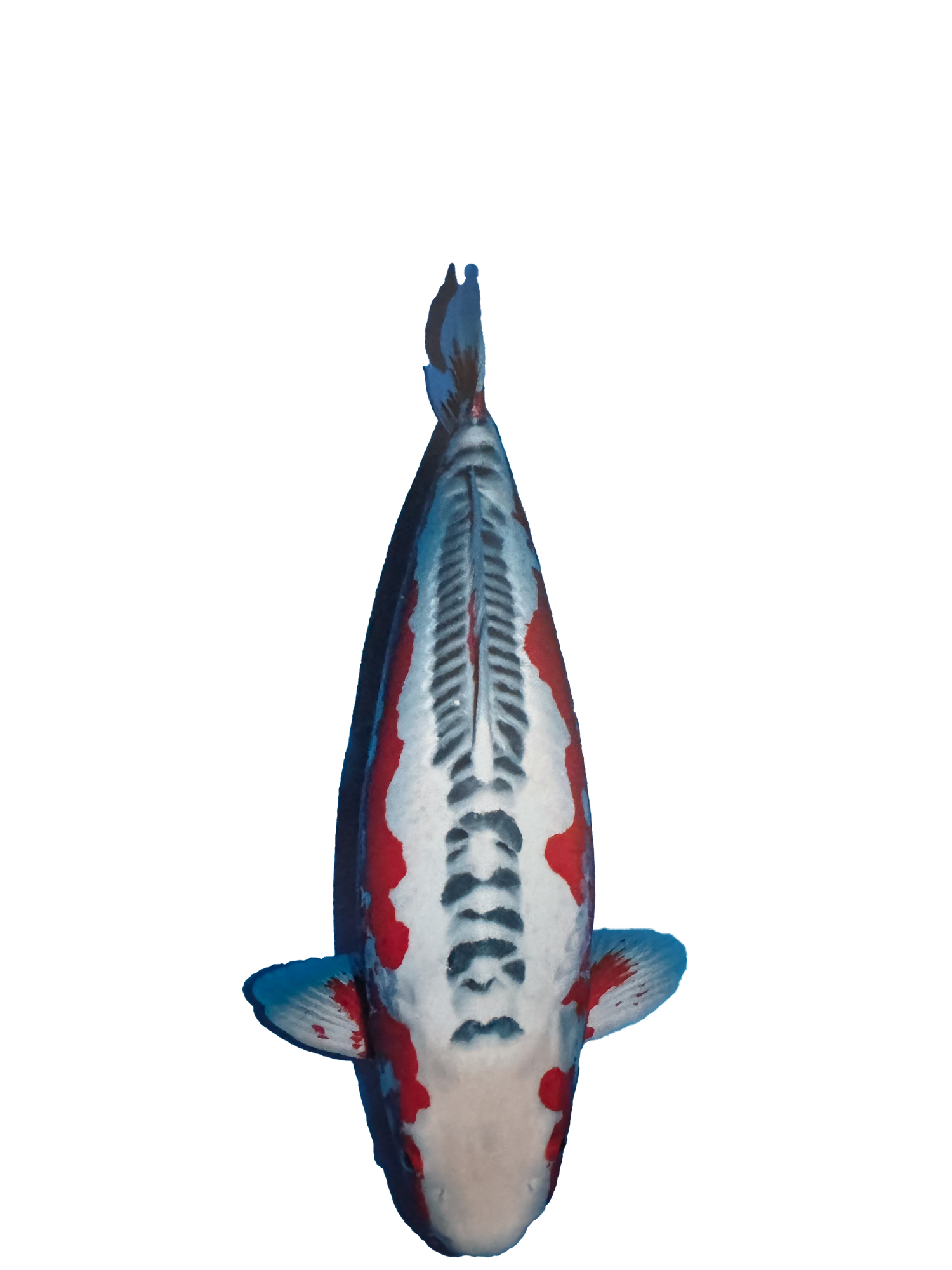 View ProductWhen you think of a koi fish, most people will imagine a fish with some combination of red and white colouration. This is because these colours are very well established in the koi world and have been bred for a very long time. Kohaku (koh-HAH-koo) koi are white koi with a red pattern over the top and are one of the most popular and well-known koi varieties and one of the oldest varieties! Not only are they one of the most traditional koi and a type of Gosanke koi, but they are also often a koi-keepers first variety of koi. Even non-koi enthusiasts will recognise the distinct colouration of this incredible variety. It is this that gives the Kohaku the nickname ‘The King of Koi’.The hi pattern on a Kohaku koi can be seen to have many different shapes and patterns. Some of the most commonly seen patterns on a Kohaku koi include: Tancho, where the koi has only a single hi spot on the nose; Maruten, which is similar to a Tancho but with additional hi markings down the body of the koi; Straight Hi, where the koi has a continuous, connected red pattern down its body; Inazuma, which is similar to a Straight Hi but has the pattern running in a zig-zag shape; and stepped patterns. The stepped patterns are the most common and involve the koi having a number of islands of hi that are completely disconnected from each other, similar to stepping stones. These patterns are named depending on the number of steps and the most popular ones are the Nidan (two-stepped) and the Sandan (three-stepped) patterns.Things to consider when judging this variety:· Shiro (white) base colour· Hi (red) pattern· Kiwa (edges) of colours