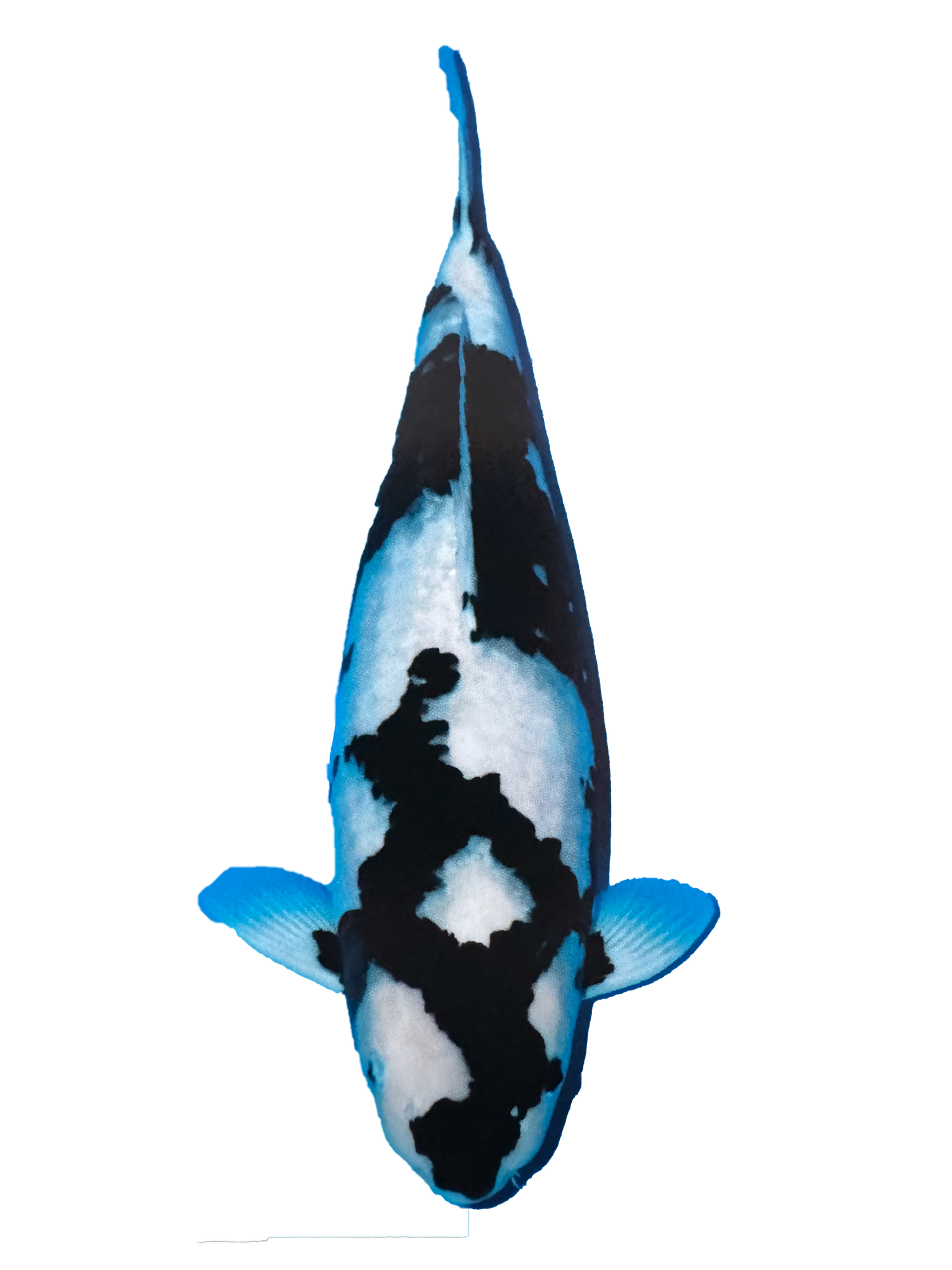 View ProductMatsukawabake (math-SOO-kah-wah-BAHK-keh) koi is a scaled, non-metallic version of the Kumonryu, Kikokuryu and Ginga koi varieties. The Matsukawabake koi were originally created from a desire to produce more variations of the changing sumi (black) pattern seen in Kumonryu and Kikokuryu koi as these koi have been incredibly popular with koi keepers across the world. The Matsukawabake koi was also created in an attempt to improve the stabilisation of the sumi pattern as the sumi is a lot more stable in older Kumonryu koi than in Kikokuryu koi. We will talk more about what this means later on.The attempt was very successful quite early on, with many koi breeders producing similar results within only a few generations by pairing a Kumonryu koi with a Shiro Utsuri koi (a black and white non-metallic, scaled koi). This pairing resulted in a koi that looked like the Shiro Utsuri with no metallic skin and fully scaled but it also had the desired changing sumi pattern of the Kumonryu. Meaning, that over a Matsukawabake koi’s lifetime, it can be fully white, fully black, and anything in between! This pattern is particularly desirable to many koi keepers because the fish is constantly changing sometimes the change can be very rapid, other times the change is very slow. Regardless, it is always interesting the look in a pond with one of these fish and see what is happening to the pattern.Things to consider when judging this variety:· Shiro (white) base colour· Sumi (black) colour quality